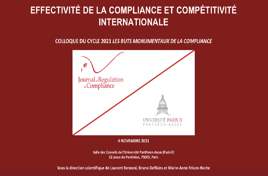 Ce colloque est organisée par le Journal of Regulation & Compliance ( JoRC) et par le Centre de recherches en Economie et en Droit (CRED) de l'Université Panthéon-Assas (Paris II).