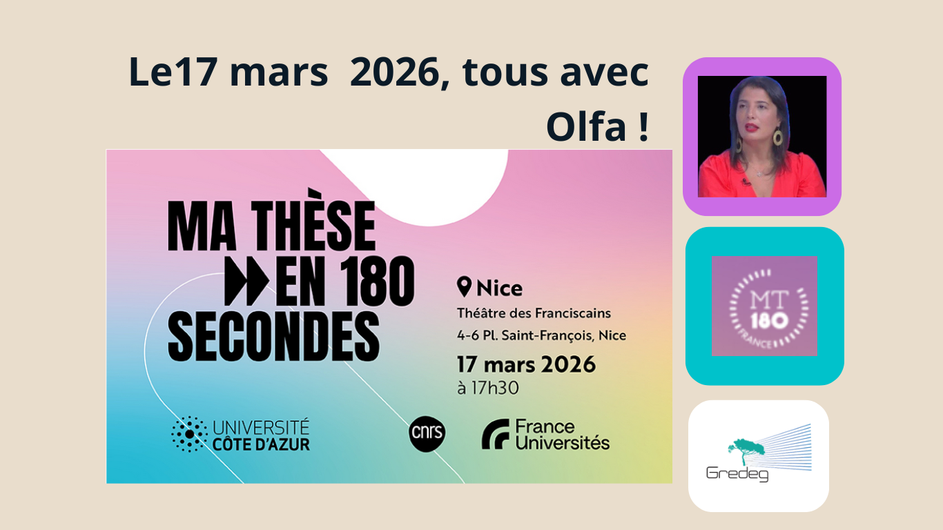 Le GREDEG soutient Olfa Soukri lors de la finale régionale de « Ma thèse en 180 secondes » à Nice !