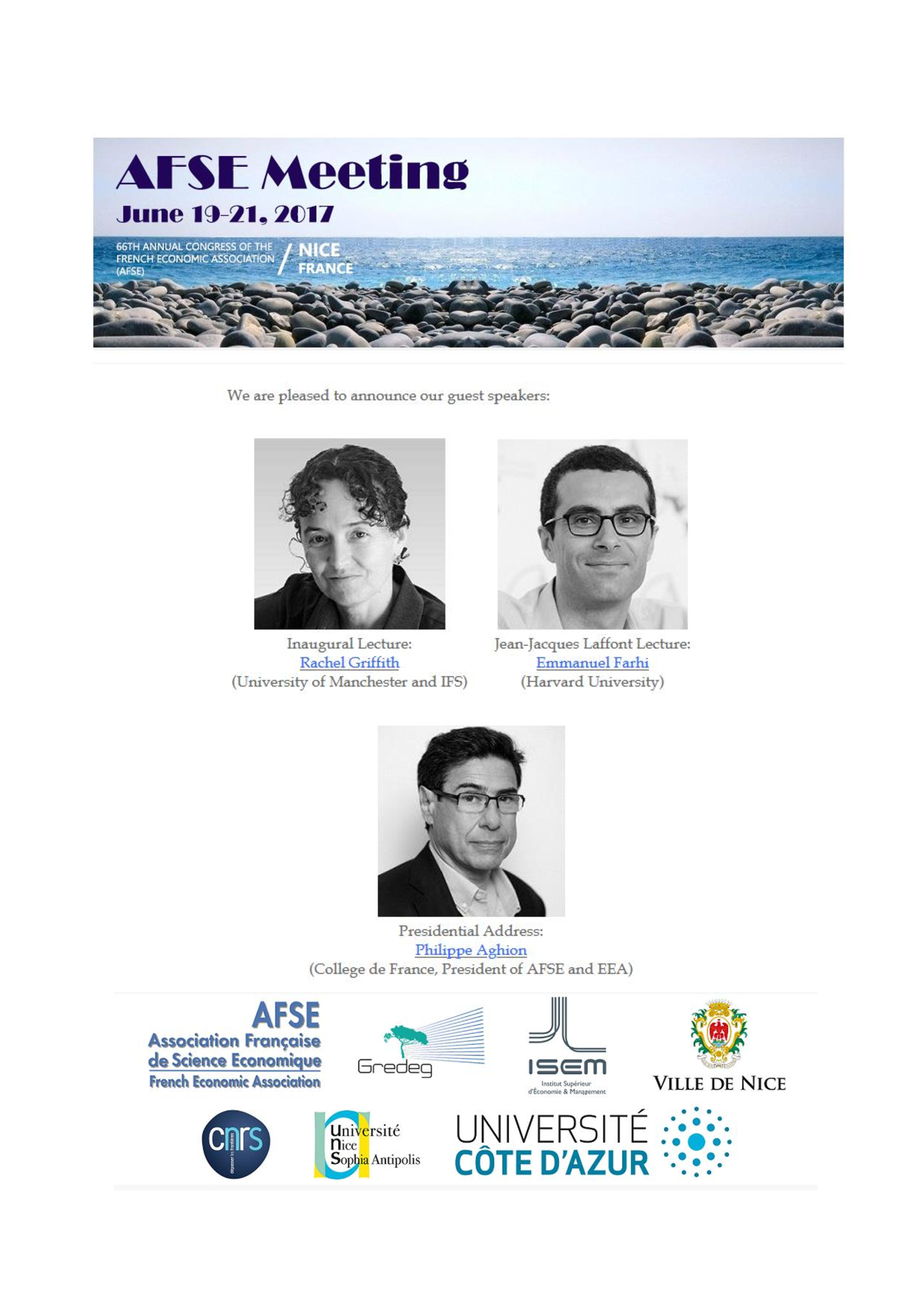 Le 66ème Congrès Annuel de l’Association Française de Sciences Economiques (AFSE) s'est déroulé les 19-20-21 Juin à Nice.