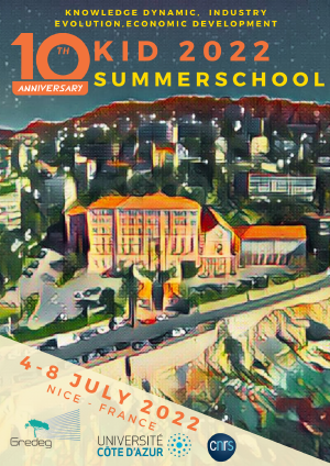 10th edition of the KID summerschool (Knowledge Dynamics, Industry Evolution, Economic Development) to be held in Nice (France), 4-8 july 2022 (Hotel Saint Paul - Maison du Séminaire).