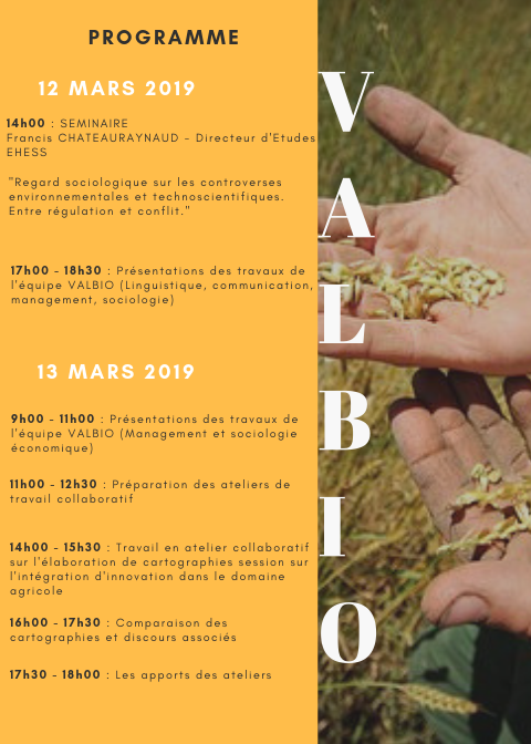 Ces rencontres seront aussi l’occasion de présenter les travaux de recherche, menés par l’équipe pluridisciplinaire Valbio, sur la diffusion des innovations de biocontrôle et de la biostimulation. Enfin, l’organisation d’ateliers collaboratifs visera à penser la place du biocontrôle dans le système de production agroalimentaire.
