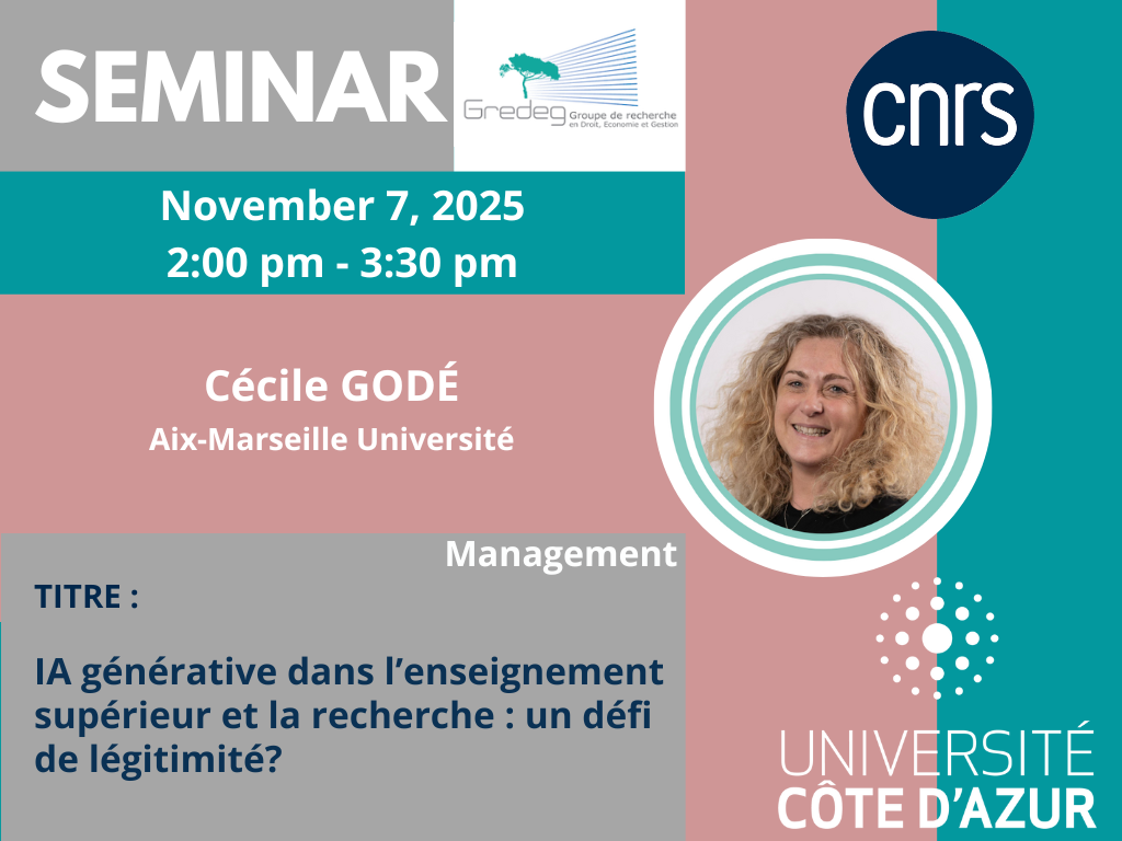Tout au long de cette année universitaire, le thème des séminaires de la composante Gestion du GREDEG portera sur l'intelligence artificielle générative.