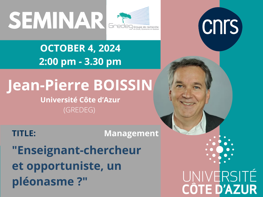 Après une année consacrée au thème "Méthodologie et Sciences de Gestion" en 2023-2024, le séminaire de Jean-Pierre Boissin est le premier qui s'inscrira dans un nouveau cycle