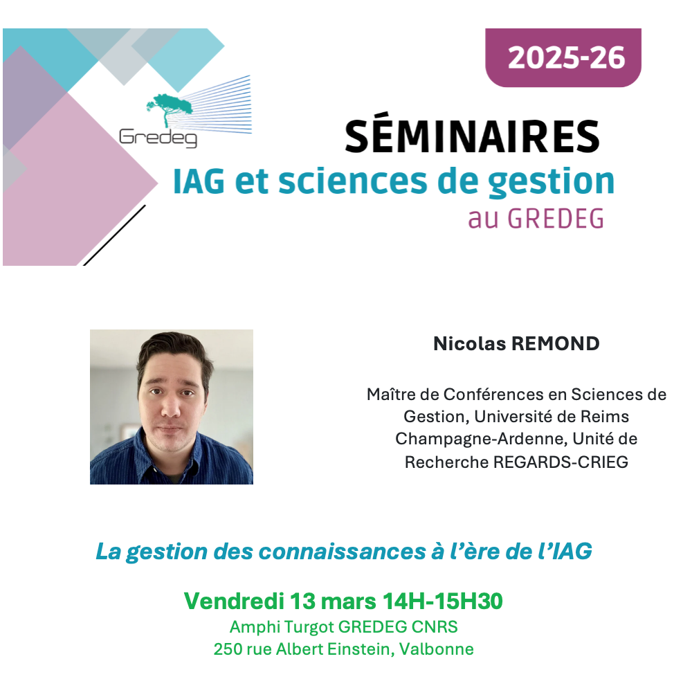 Tout au long de cette année universitaire, le thème des séminaires de la composante Gestion du GREDEG portera sur l'intelligence artificielle générative.