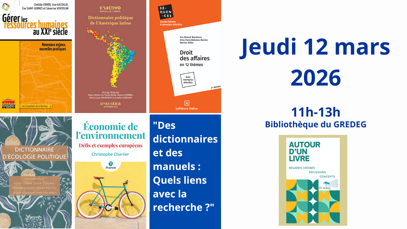 The Gredeg Books seminar aims to present the work of Gredeg members, to discuss the place of books in our disciplines, as well as the writing and publication processes.